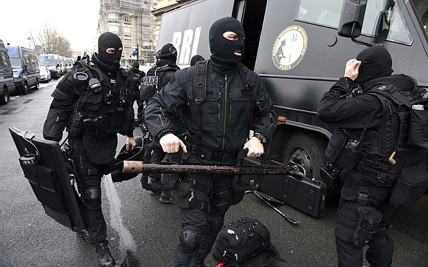 The above pictures come from some of the many articles concerning the response to the attacks in Paris. Frankly, who can tell the difference between the Caliphate’s murdering warriors and the State’s murdering thugs?? Not just in the pictures, either. And just because they have “POLICE” stenciled on their protective vests doesn’t mean a thing.