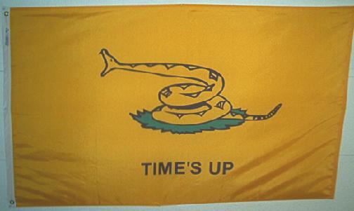 The second “Time’s Up” photo was taken from my own yard. The “Time’s Up” Gadsden flag was created by Kent McManigal.