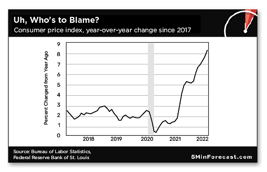 Of course, people (especially the Democrats) LOVE to blame the evil members of Big Oil – and sometimes the government policies they love to point out subsidize Big Oil. Certainly the oil companies HAVE contributed to inflation, but why? First, because government (Big Government, natch?) creates situations where it is tremendously advantageous for them to do so. Second, because the oil companies’ priorities are very simple: make money for their shareholders, pay off their debts, and survive! So they take every opportunity to sell their products at a higher price. And they too knew that inflation was coming, so (to put it crudely) the faster they can convert oil and gas into gold and silver (or other things that do not lose their value in inflationary times), the better.