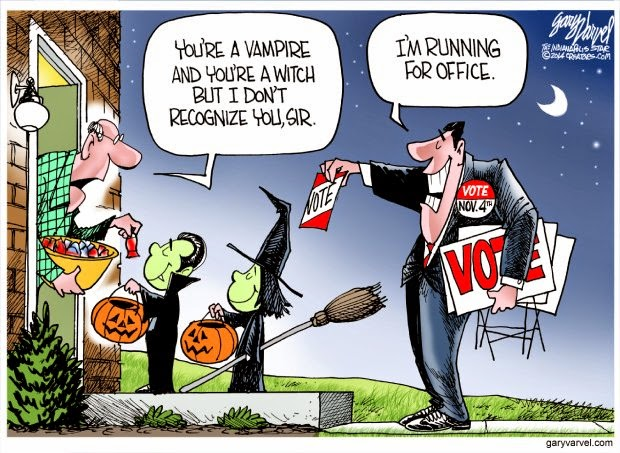 Is your brain fried yet? You don’t have to watch television (or news online) or listen to the radio to get bombarded with the junk. Open your mailbox, if you dare. Drive past thousands of yard signs and billboards to and from work or stores. Check your wipers when you get back to your car after going to an office or store: that probably isn’t a parking ticket – its campaign fliers. And watch out for those true-believers crowding the street corners with their signs.