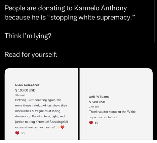 We don’t know how many people have donated how much to the family of the murdered classmate to pay for funeral expenses and help them buy what they need to defend themselves against people who want to hit on the family of “white supremacist bullies.”