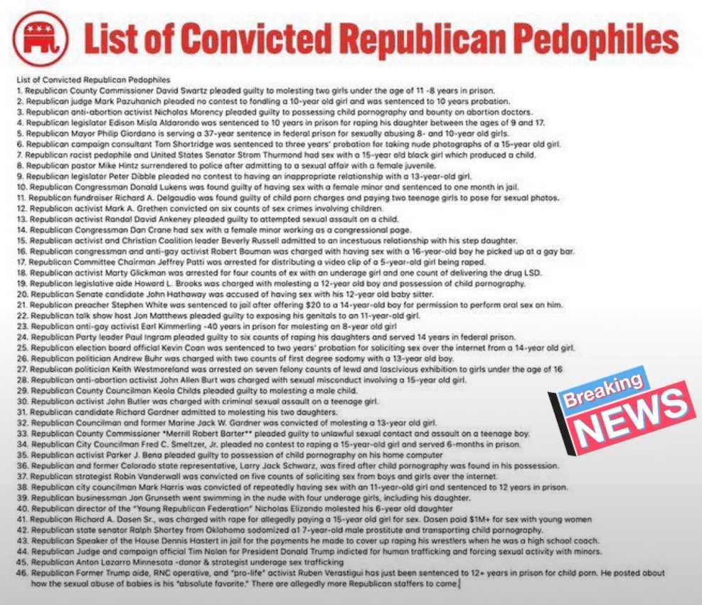 It is not, of course, just Republicans: go to this list what has more dozens of Republicans and many Democrats. Now, we realize that these lists may be bogus, or have many errors: just as both the mainstream media and the alternative media try to push their agendas. And some of these are decades old.