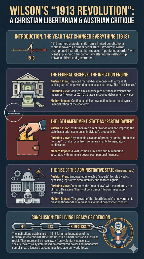 We at TPOL have always viewed Woodrow Wilson as a great enemy of liberty, a “Progressive” who advocated the Administrative State and had many other faults. Unfortunately, he is frequently listed as one of the “great” POTUS because he was such an activist and got us into the Great War.